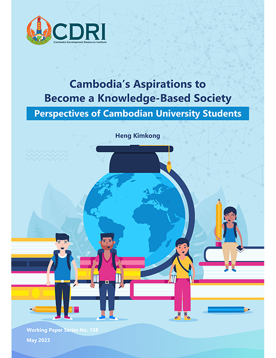 This study is the outcome of a fellowship programme managed by the Centre for Educational Research and Innovation (CERI) of the Cambodia Development Resource Institute (CDRI). It aims to examine the role of Cambodian universities in supporting the country’s aspirations to become a knowledge-based society from the perspectives of Cambodian university students. A knowledge-based society is defined as a society that relies on the acquisition, creation, utilization and dissemination of knowledge to enhance socioeconomic development (UNESCO 2016).