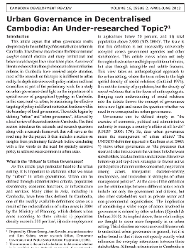 Several authors (particularly Laundau 2008; Henke 2011) label Cambodian national civil society as a sphere that is neither apolitical nor autonomous, but influenced or co-opted by and blurred with the state. They posit that a Gramscian perspective is relevant to interpreting civil society in the country. This article suggests that the application of a Gramscian perspective also proves relevant to...