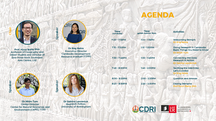 Hence, in this upcoming May and in celebration of World Day for Cultural Diversity for Dialogue and Development, Cambodia Development Resource Institute (CDRI) and Saw Swee Hock Southeast Asia Centre (SEAC) at the London School of Economics and Political Science (LSE) are delighted to collaborate to host an online panel discussion on "Doing Research in Cambodia: Connecting the Dots, Spotting the Interlinks". This is also part of CDRI's Connect-#LeadTheWay initiative.