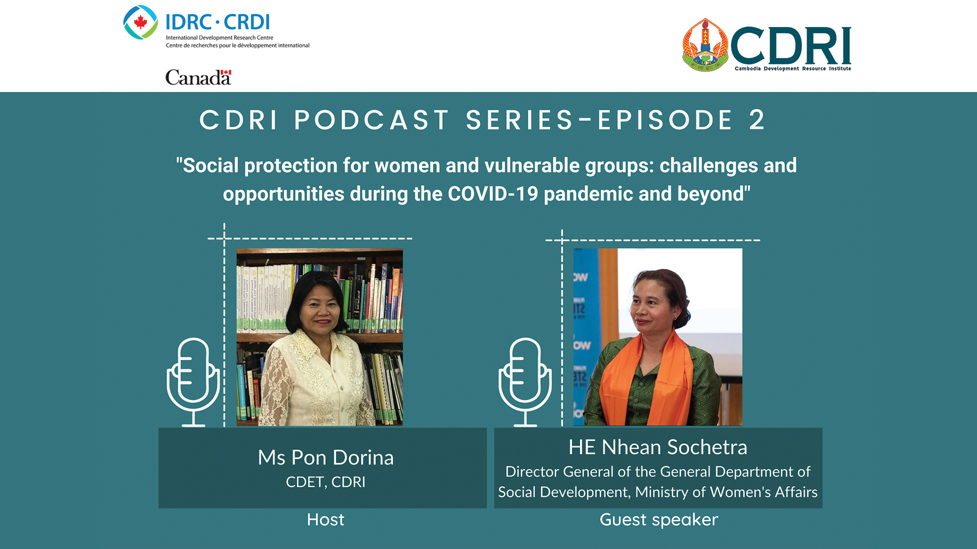 Our host, Ms Pon Dorina sat with Her Excellency Nhean Sochetra, Director General of the General Department of Social Development, Ministry of Women's Affairs, to discuss the challenges and opportunities of social protection for women and vulnerable groups during the COVID-19 pandemic and beyond.