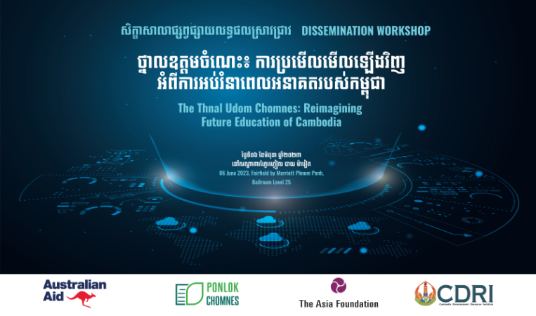 On 6th June 2023, CDRI will host the dissemination workshop on Reimaging Future Education of Cambodia under the program ”Thnal Udom Chomnes,” at Fairfield by Marriott Phnom Penh (Ballroom Level 25) at 8:00 AM to 13:30PM.