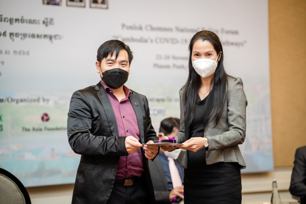 On the 23rd and 24th of November, our project members participated in the National Policy Forum, organized and supported by The Asia Foundation and Australian Aid under Ponlok Chomnes Program. The forum brought think tanks, practitioners, and policymakers to discuss emerging issues and solutions under the theme “Cambodia’s COVID-19 Recovery Pathway”. It also aims to promote the culture of knowledge sharing and evidence-based policymaking in Cambodia. Researchers from various organizations presented the findings, followed by a series of panel discussions.