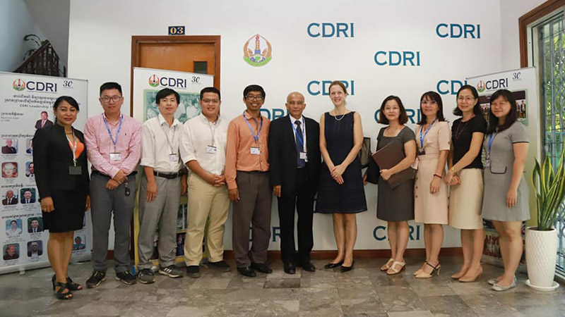 Thursday, 10 September 2020, Ms Meloney C. Lindberg, country representative of The Asia Foundation and Ms Heang Sophea, program manager of Ponlok Chomnes program, paid a courtesy call to CDRI. Supported by the Department of Foreign Affairs and Trade (DFAT), Australia, the partnership between TAF and CDRI focuses on research, policy dialogues and capacity development in higher education. Ongoing research projects in 2020 under this partnership include: 1) adoption of educational technology during the covid-19 pandemic, 2) STEM literacy and major choices 3) internationalization of higher education in Cambodia and 4) typology of Cambodian higher education institutions.