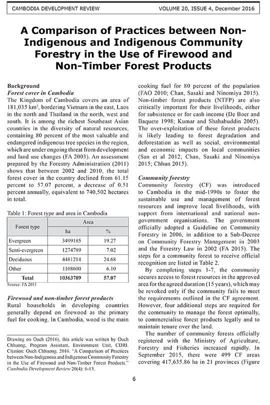 A Comparison of Practices between Non-Indigenous and Indigenous Community Forestry in the Use of Firewood and Non-Timber Forest Products
