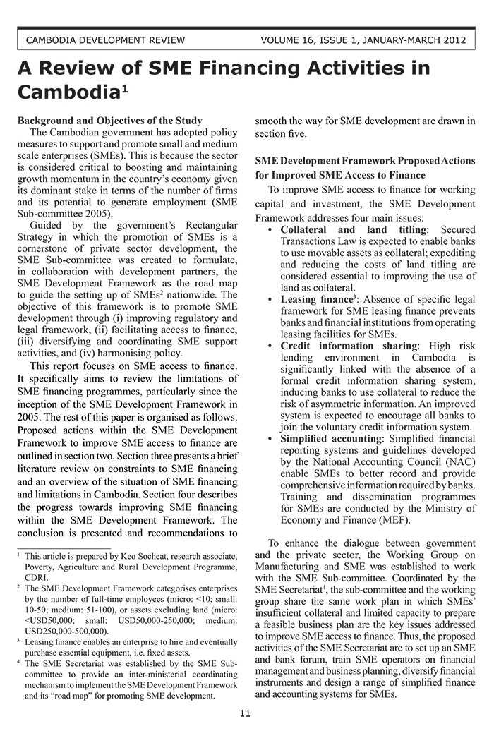 A Review of SME Financing Activities in Cambodia