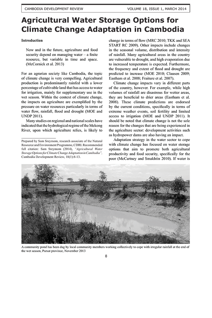 Agricultural Water Storage Options for Climate Change Adaptation in Cambodia