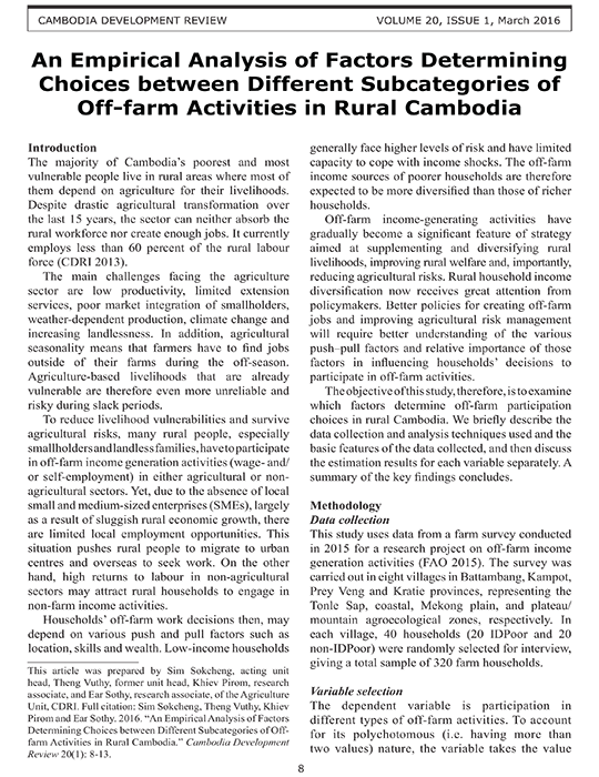 An Empirical Analysis of Factors Determining Choices between Different Subcategories of Off-farm Activities in Rural Cambodia