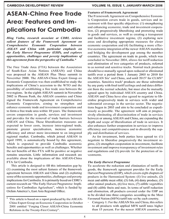 Asean-China Free Trade Area: Features and Implication for Cambodia