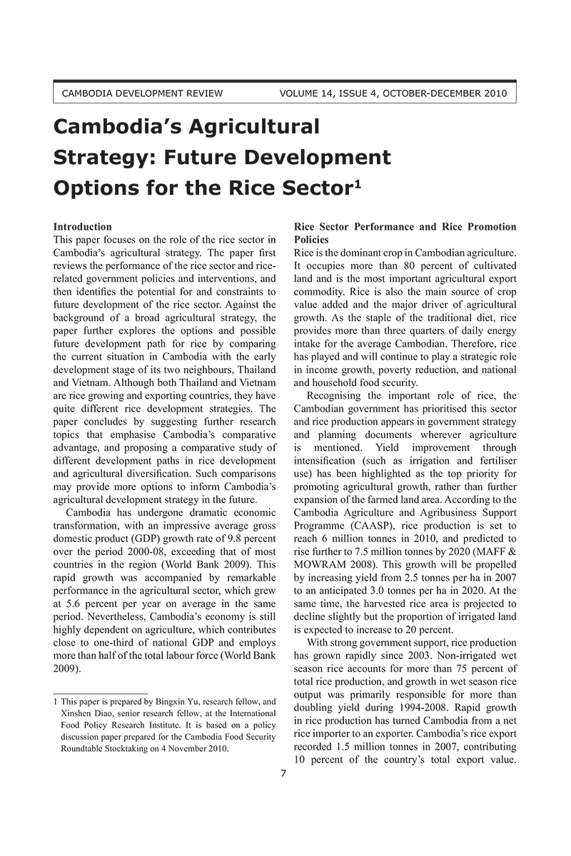 Cambodia’s Agricultural Strategy: Future Development Options for the Rice Sector1