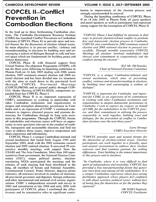 COPCEL II—Conflict Prevention in Cambodian Elections