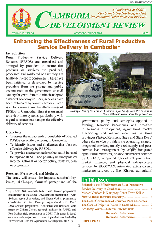 Enhancing the Effectiveness of Rural Productive Service Delivery in Cambodia