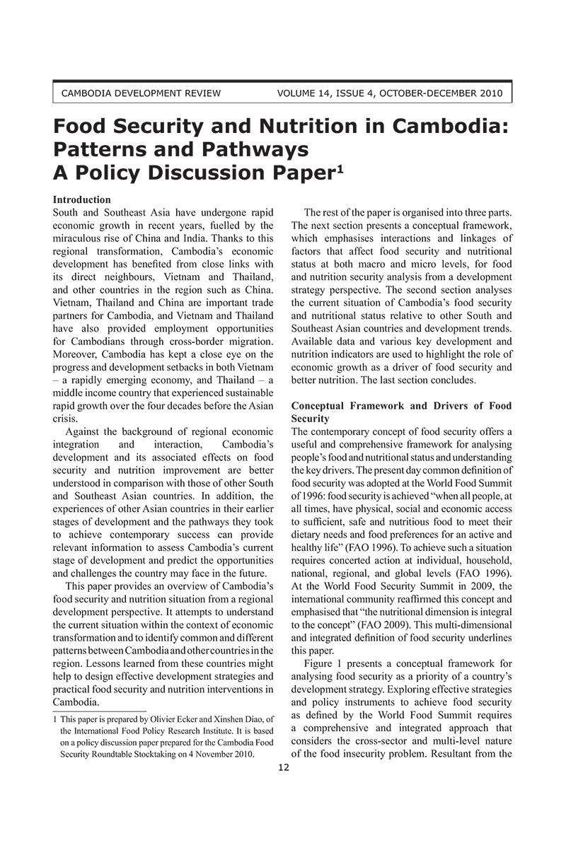 Food Security and Nutrition in Cambodia: Patterns and Pathways A Policy Discussion Paper1