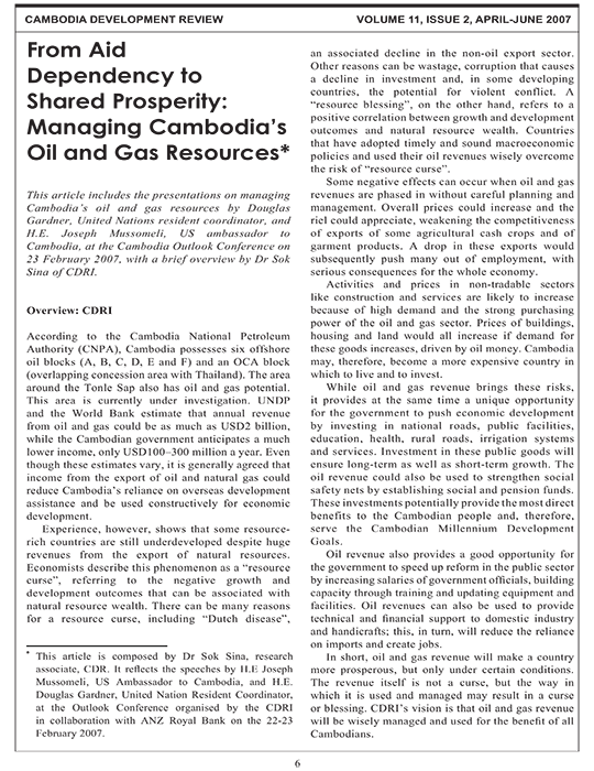 From Aid Dependency to Shared Prosperity: Managing Cambodia’s Oil and Gas Resources
