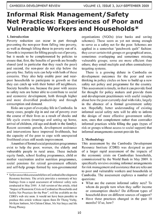 Informal Risk Management/Safety Net Practices: Experiences of Poor and Vulnerable Workers and Households