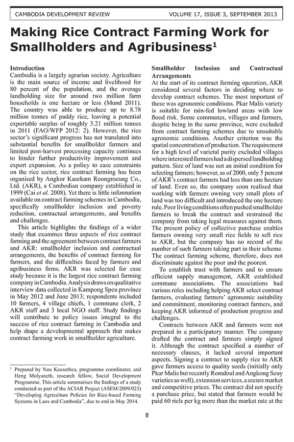 Making Rice Contract Farming Work for Smallholders and Agribusiness
