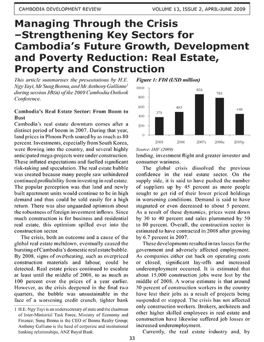 Managing Through the Crisis –Strengthening Key Sectors for Cambodia’s Future Growth, Development and Poverty Reduction: Real Estate, Property and Construction
