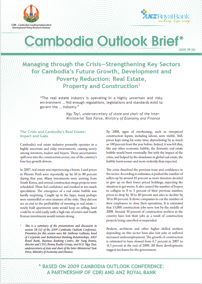 Managing through the Crisis—Strengthening Key Sectors for Cambodia’s Future Growth, Development and Poverty Reduction: Real Estate, Property and Construction1