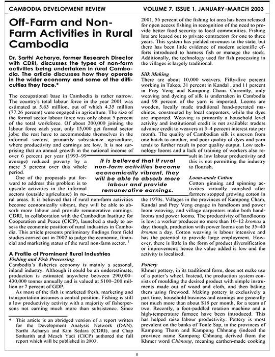 Off-Farm and Non- Farm Activities in Rural Cambodia
