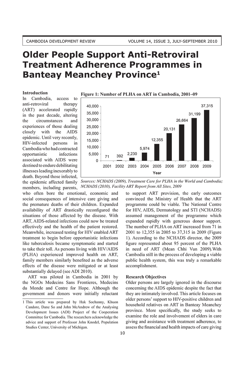 Older People Support Anti-Retroviral Treatment Adherence Programmes in Banteay Meanchey Province1