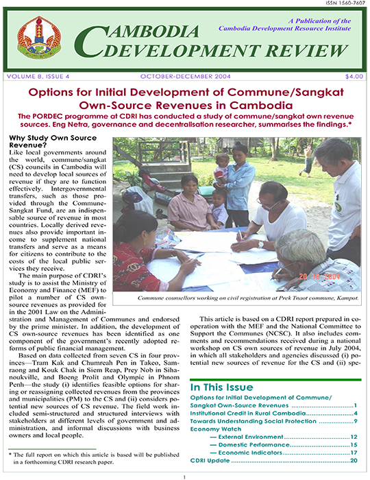 Options for Initial Development of Commune/Sangkat Own-Source Revenues in Cambodia
