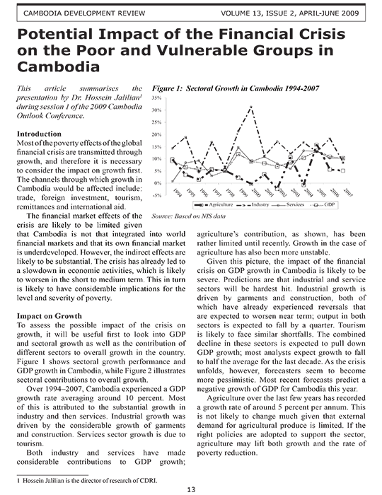Potential Impact of the Financial Crisis on the Poor and Vulnerable Groups in Cambodia