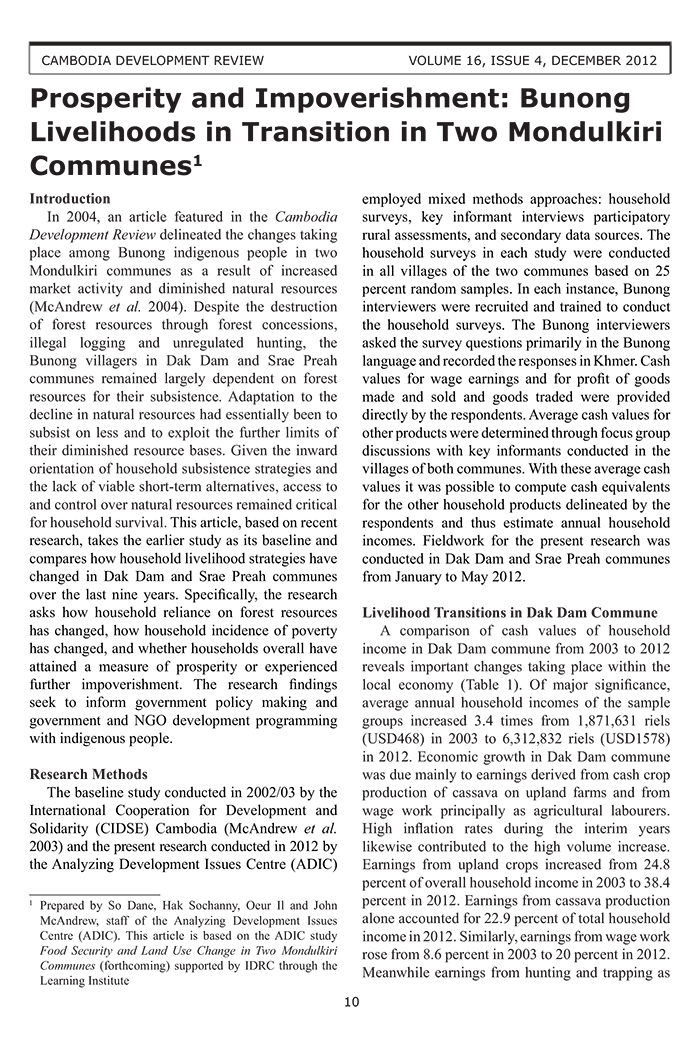 Prosperity and Impoverishment: Bunong Livelihoods in Transition in Two Mondulkiri Communes