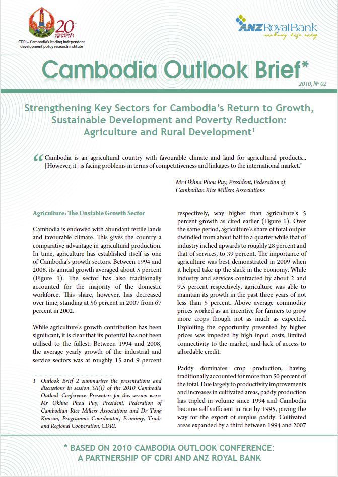 Strengthening Key Sectors for Cambodia’s Return to Growth, Sustainable Development and Poverty Reduction: Agriculture and Rural Development1