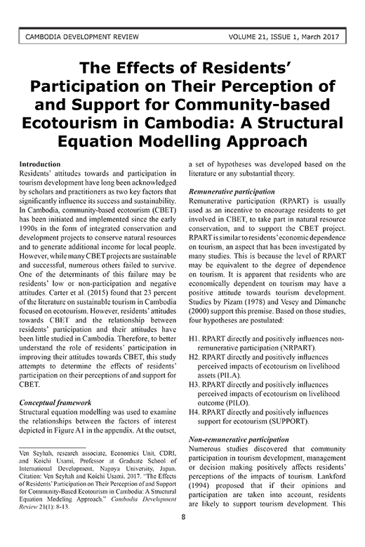 The Effects of Residents’ Participation on Their Perception of and Support for Community-based Ecotourism in Cambodia: A Structural Equation Modelling Approach