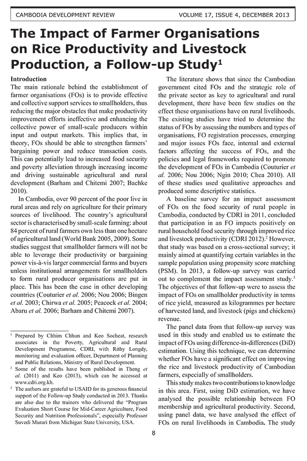 The Impact of Farmer Organisations on Rice Productivity and Livestock Production, a Follow-up Study