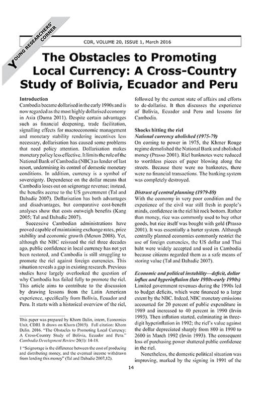 The Obstacles to Promoting Local Currency: A Cross-Country Study of Bolivia, Ecuador and Peru