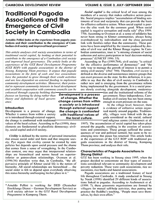 Traditional Pagoda Associations and the Emergence of Civil Society in Cambodia
