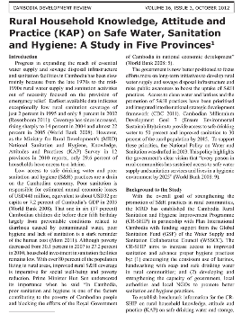 Rural Household Knowledge, Attitude and Practice (KAP) on Safe Water, Sanitation and Hygiene: A Study in Five Provinces