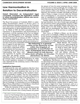 Challenges of Fiscal Decentralisation Reform in Cambodia: Identifying Own Revenue Sources for the Commune/Sangkat