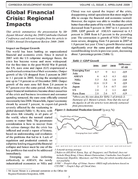 The Global Financial and Economic Crisis: Its Implications for Our Region and for Cambodia