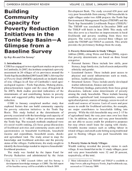 Building Community Capacity for Poverty Reduction Initiatives in the Tonle Sap Basin—A Glimpse from a Baseline Survey