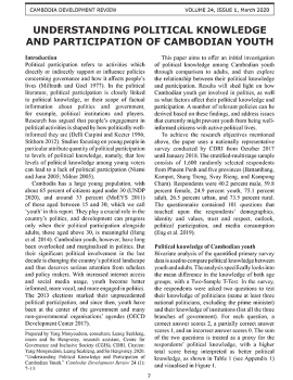 Youth participation in local politics remains understudied in the Cambodian context, in particular the catalysts for and barriers to youth political engagement. This study hence aims to address youth engagement in local politics from the perspective of both young and older leaders. Drawing on in-depth interviews with local leaders across four provinces, along with quantitative evidence from a 2018...