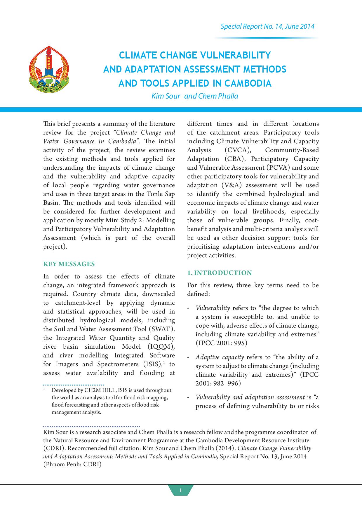 Climate Change Vulnerability and Adaptation Assessment Methods and Tools Applied in Cambodia