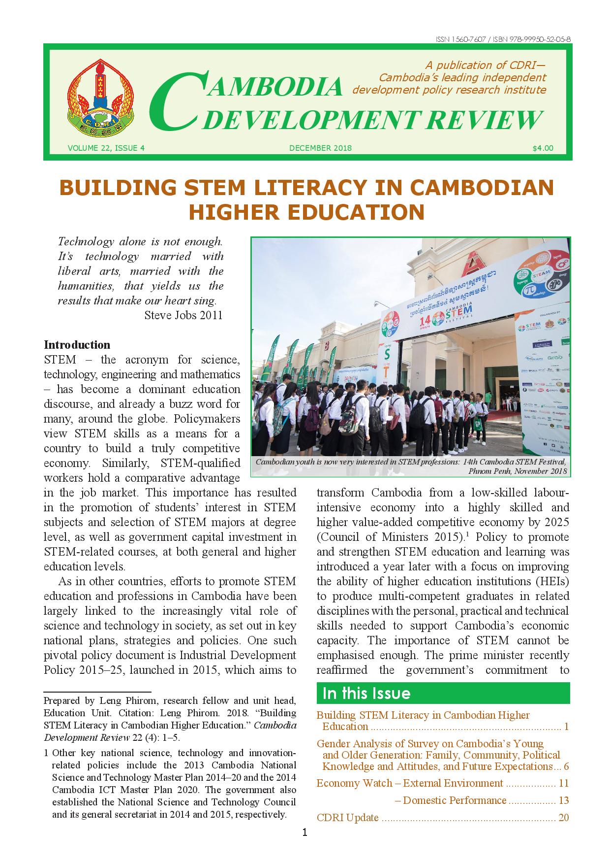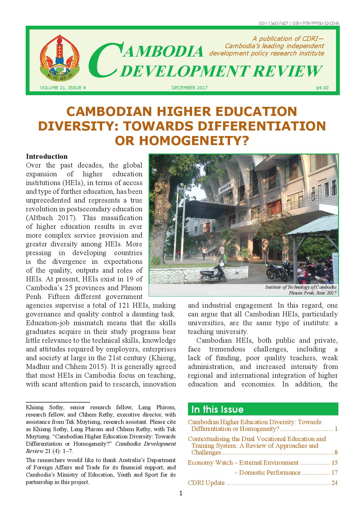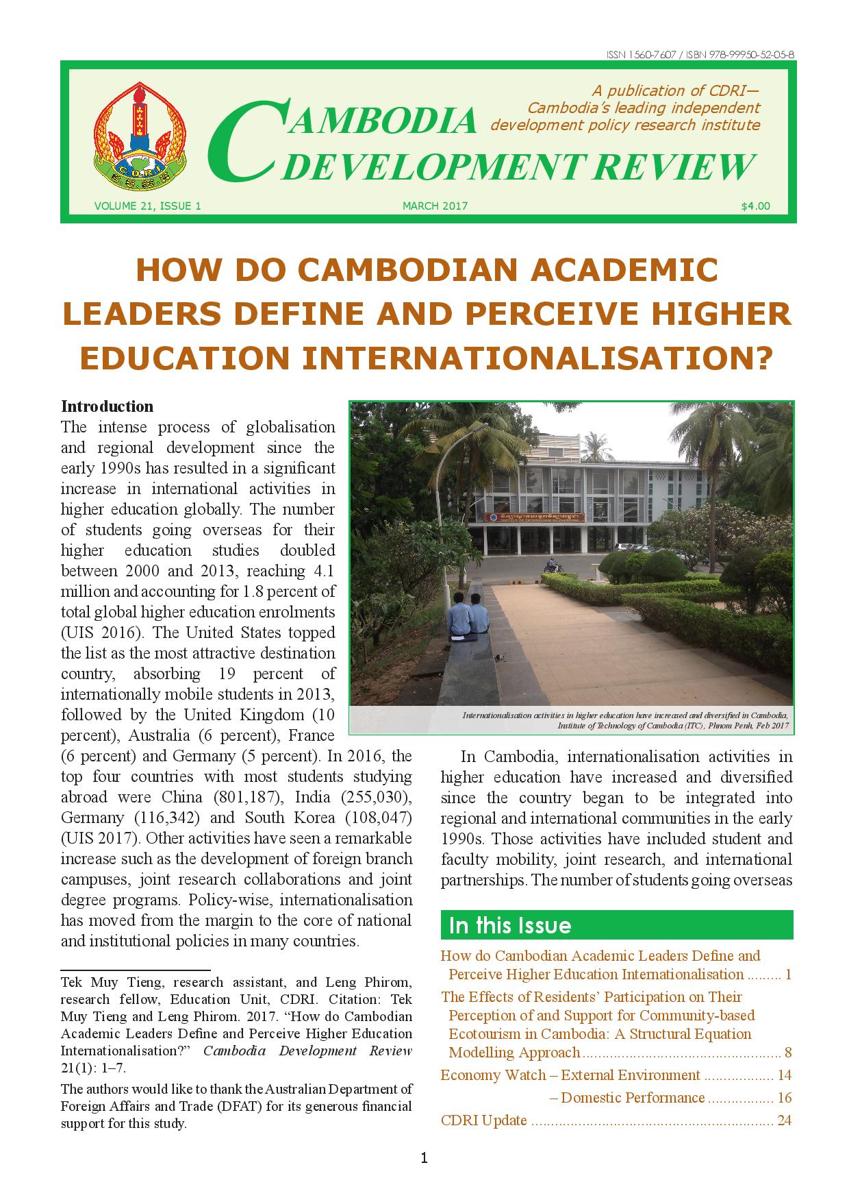 The “Higher Education Policy Research & Influencing in Cambodia” was one of the major programmes implemented by the Education Unit of the Cambodia Development Resource Institute (CDRI). Receiving financial support from the Australian Department of Foreign Affairs and Trade (DFAT), the three-year programme aimed to produce independent, objective, hi...