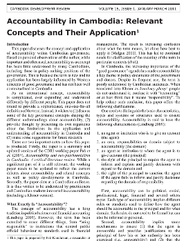 Cambodia is launching another phase of decentralisation, attempting to restructure sub-national, especiallyprovincial, administration. These reforms are widely referred to as decentralisation and deconcentrationor, more simply, as D&D. The aim is to establish unified provincial and possibly district administrations,which are accountable to bot...