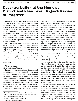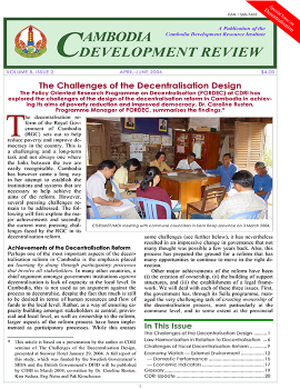 To achieve democratic development, Cambodia’s next step towards fiscal decentralisation will focus on both institutional and service delivery reform at district level so as to strengthen the capacity of the sub-national administration and better link it to sectoral service delivery. To move forwards, fiscal decentralisation needs to be comprehe...
